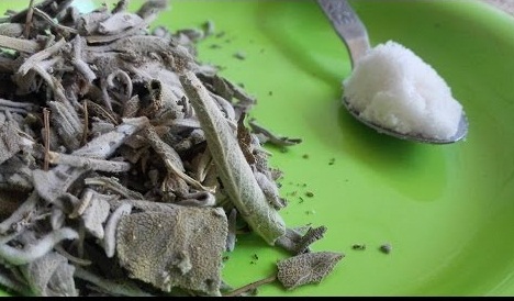 وضع الملح والميريمة في صينية، ثم إدخالها إلى الفرن المسخن على حرارة متوسطة. ترك المكونات حتى تصبح صلبة. طحن أوراق المريمية لتصبح على شكل مسحوق ناعم. فرك الأسنان بالمسحوق لمدة دقيقتين وسترين النتيجة الهائلة.