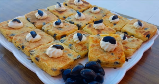 300 غ سميد + 300 مل حليب+7,5 غ خميرة الحلويات+الملح+100غ زيتون اسود