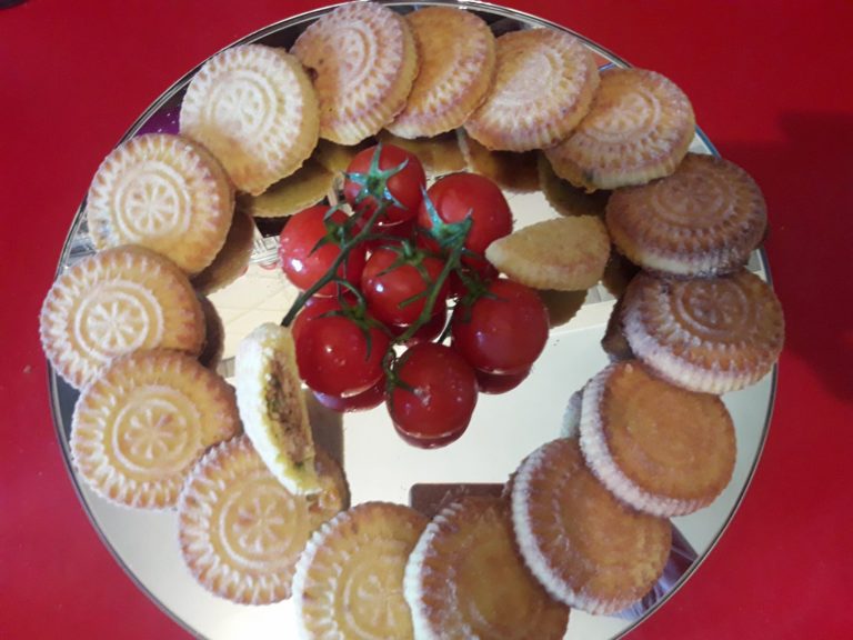 يخلط الكل وتصنع منه كويرات توضع في خليط السميد ثم في مول الراكيطا وندخلها الفرن حتى تنضج.