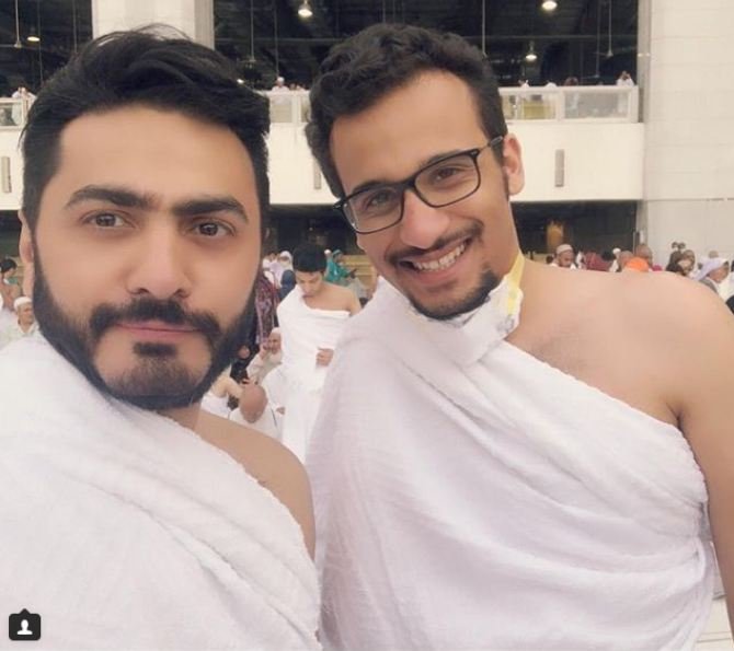 بالصور : الفنانة المعتزلة بسمة بوسيل تؤدي مناسك العمرة رفقة زوجها تامر حسني