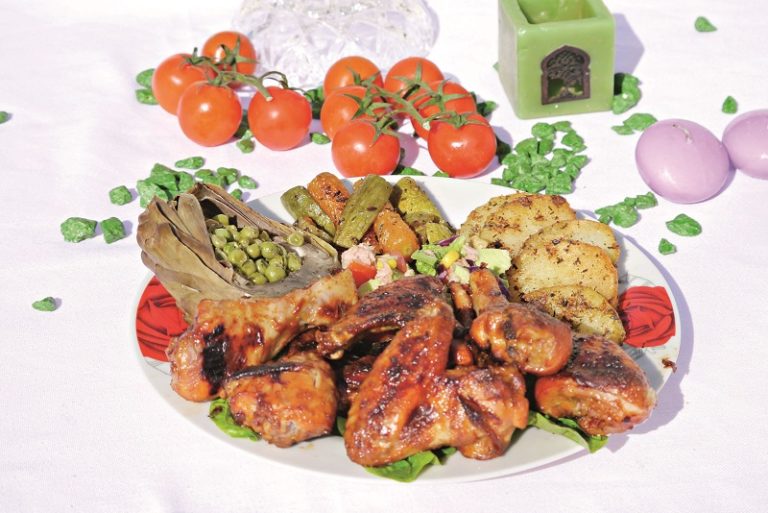 نفور الدجاج مع الملح والثوم، نضعه في الصلصة الاندلسية مختلطة مع الياغوورت ونتركه ساعتين ندخله للفرن ونتركه يتحمر ونقدمه