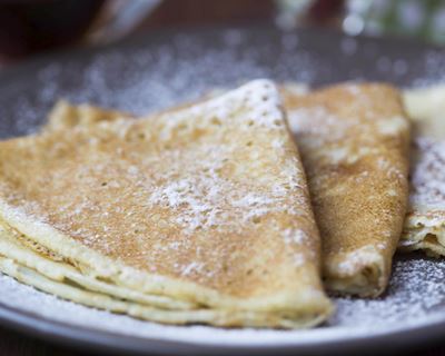 نمزج المكونات السائلة تم نضيف الدقيق تدريجيا نسخن المقلاة خاصة بالكريب نفرغ نصف مغرفة من العجين مع امالة المقلاة ليأخد حجمها.