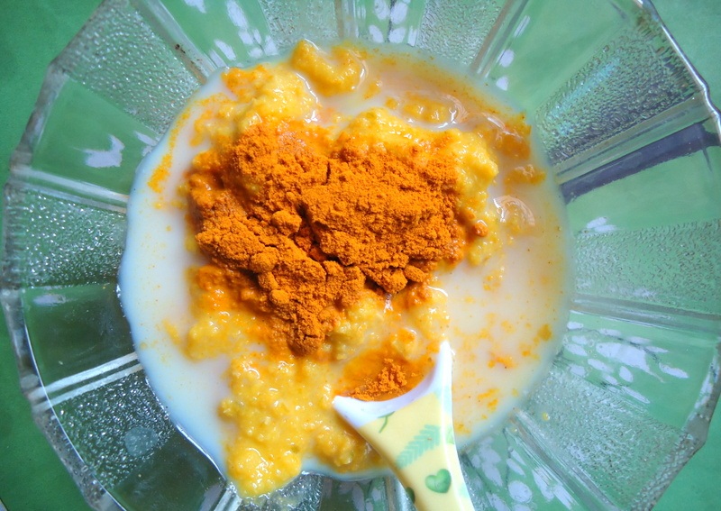 تجفف قشور البرتقال في الشمس لمدة يومين أو ثلاثة أيام. تطحن قشور البرتقال جيدا حتى تصبح هشة. تؤخذ ملعقة كبيرة من مسحوق قشر البرتقال، وتخلط مع لبن الزبادي حتى يصبح الخليط عجينة ناعمة. يوضع الماسك على البشرة بعد تنظيفها، ويشطف الماسك بالماء الدافئ. تستخدم الوصفة يوما بعد يوم قبل الذهاب إلى النوم.