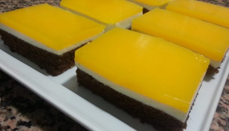 نضعهم في كاسرولة فوق نار هادئة حتى يصبح الخليط متماسكا، ثم نصبه فوق الطبقة الثانية بحذر حتى لا نفسدها ثم نزين الوجه بقطع المندرين وتقدم بعد أن تبرد وتصبح متماسكة