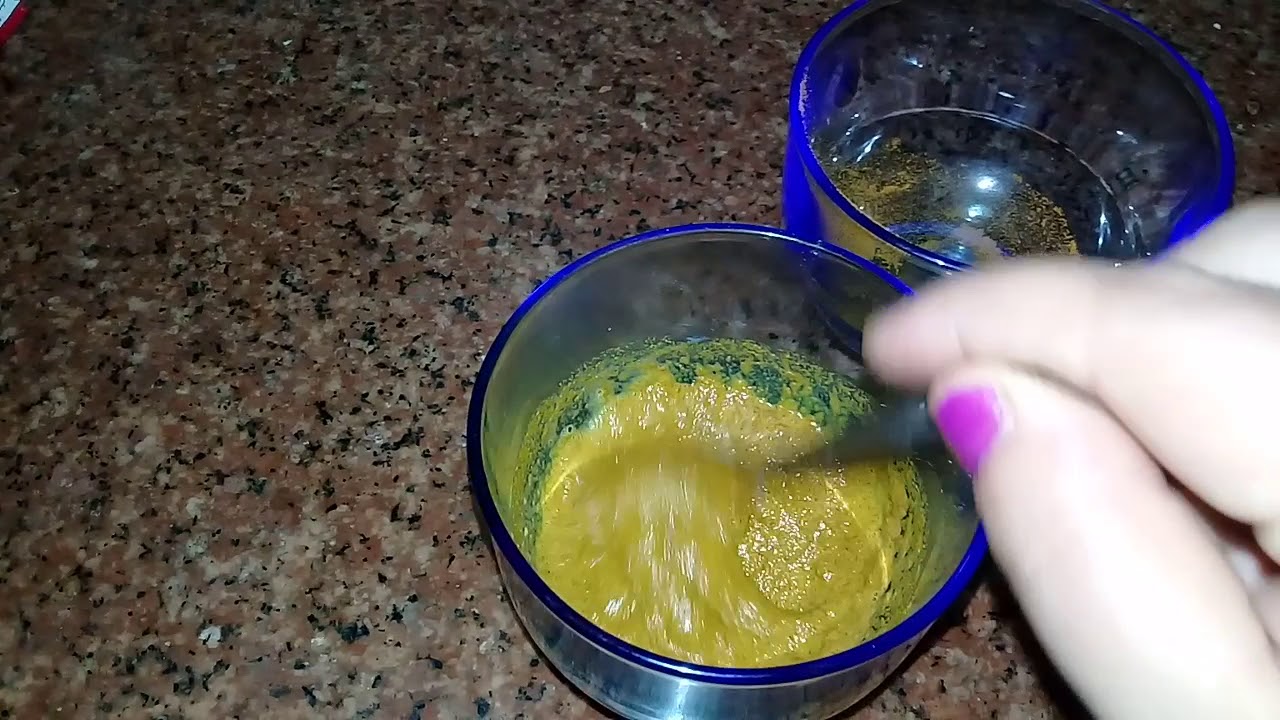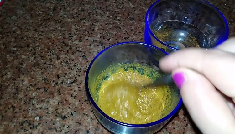 نمزج الطحينية مع الكركم، ونحركهما جيدا، ثم نضيف كمية كافية من الحليب حتى نحصل على عجينة نضع الخليط على الوجه، ونتركه من ربع إلى ثلث ساعة، حتى يجف، ثم نفركه بلطف، ونغسل الوجه بالماء.