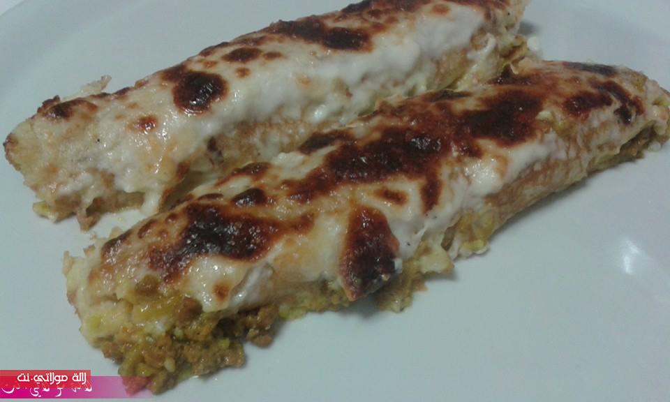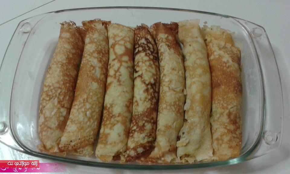 نطفيو عليها ونضيفوا لها شوية فرماج محكوك وشوية بشاميل ونبداو نعمرو الكريب ونبرموه ونحطو في المول