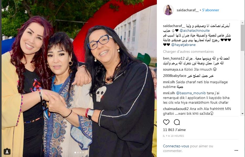 اليوم رجعت المياه لمجاريها بين سعيدة شرف وعائشة تشنويت وعلقت سعيدة على الصورة في حسابها الشخصي بكونها تصالحت مع صديقة عمرها.