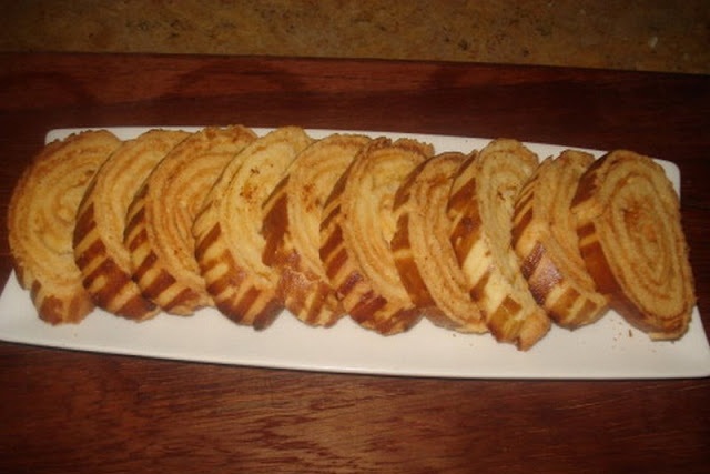 نأخذ كل كرة من الكرات نبسطها بواسطة المدلك ثم نضع الكونفيتير نبسطه فوق العجين كما تلاحظون في الصورة ثم نلف العجين مثلما نلف الفقاص العادي بعد ذلك نضعه في لاطة الفرن مدهونة وندخله إلى الفرن بعدما نخرجه من الفرن نقطعه إلى شرائح من سمك  0.6 سم نضع الشرائح المحصل عليها في اللاطة  وأخيرا ندخله إلى الفرن لمدة  15 دقيقة أخرى حتى يصبح لونه بني من كل الجوانب.