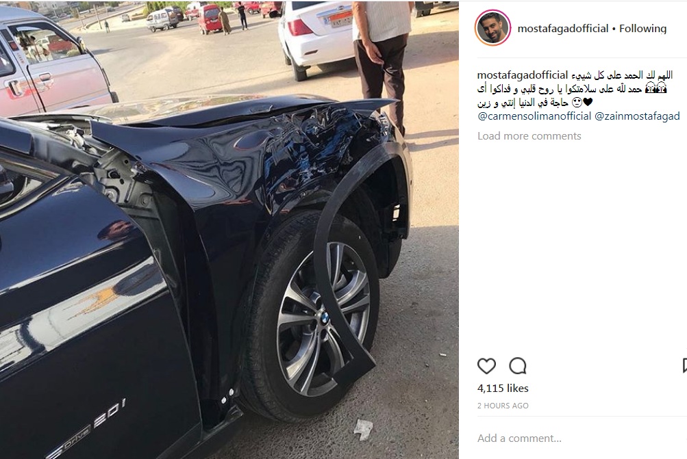 في نفس السياق، نشر زوج كارمن الملحن مصطفى جاد على صفحته الرسمية على موقع الإنستغرام صورة لسيارة زوجته بعد الحادث، وكتب معلقًا على الصورة: “اللهم لك الحمد على كل شيء.. حمدا لله على سلامتكوا يا روح قلبي وفداكوا أي حاجة في الدنيا إنتي وزين”.