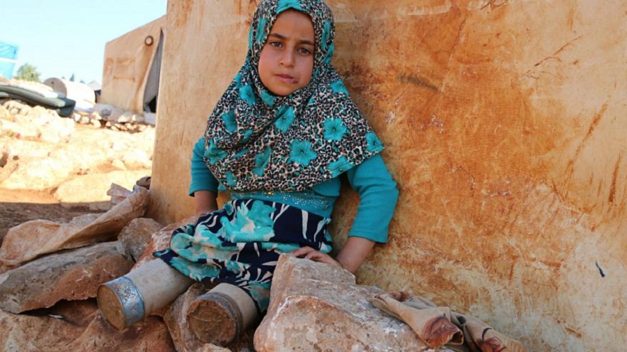 حبل الشغف وحب الحياة والتمسك بإرادة القدر، كلها تعابير تلخصها قصة الطفلة السورية مايا محمد المرعي، وهي فتاة مبتورة القدمين، إذ شغلت قصتها رواد وسائل التواصل الاجتماعي بعد انتشار شريط فيديو لها تقوم فيه بتركيب علب معدنية تستعيض بها عن ساقيها حتى تستطيع المشي.