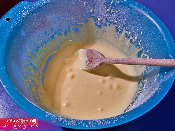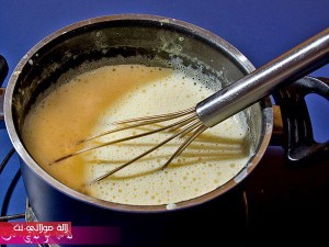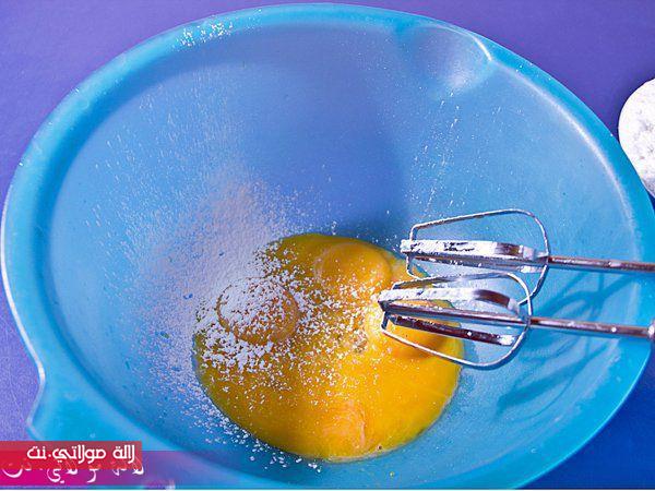 ثم نضيف السكر مع الاستمرار في التطريب دقيقتين