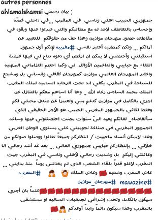 في سابقة من أمرها وكأول فنانة عربية عبرت الفنانة احلام الشمسي عن حبها للمغرب والمغاربة وأشارت احلام انها تلقت رسالة من متتبعيها من المغرب بخصوص مقاطعة مهرجان موازين فكان ردها أنها تحب هذه البلاد واهلها وستبدل مافي جهدها للمساعدة ولهذا فهي ستتنازل عن أجر إحياء حفلها للجمعيات…
