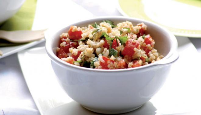 نقطع الطماطم إلى مكعبات صغيرة ثم نضيفها إلى الخليط مع القليل من الملح والابزار ونقدمه دافئا.