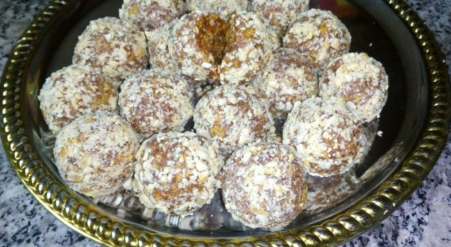 نقوم بخلط الفواكه الجافة مع مسحوق رشيم الححبوب السابقة و نقوم بخلطه مع الشكلاطة المذابة و نشكل كويرات تعطى للاطفال