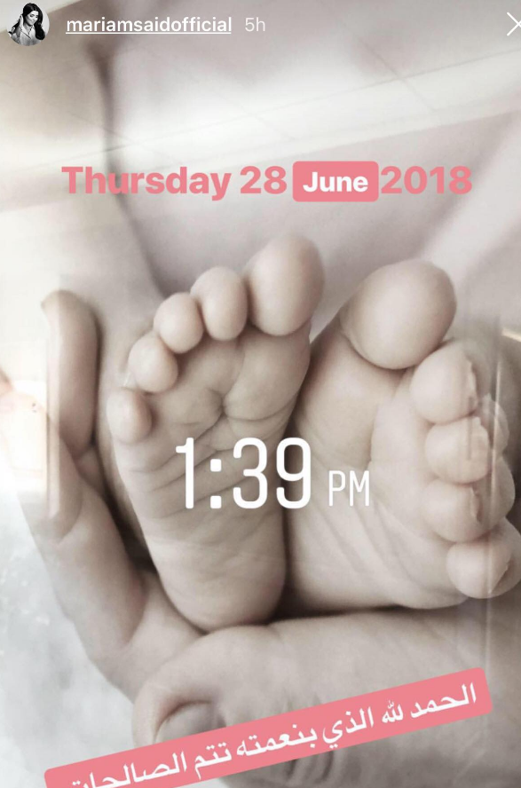 و نشرت مريم سعيد عبر حسابها الخاص على الانستغرام عبر خاصية الستوري صورة للمولود حيث علقت عليها قائلة: ”الحمد لله الذي بفضله تتم الصالحات”.