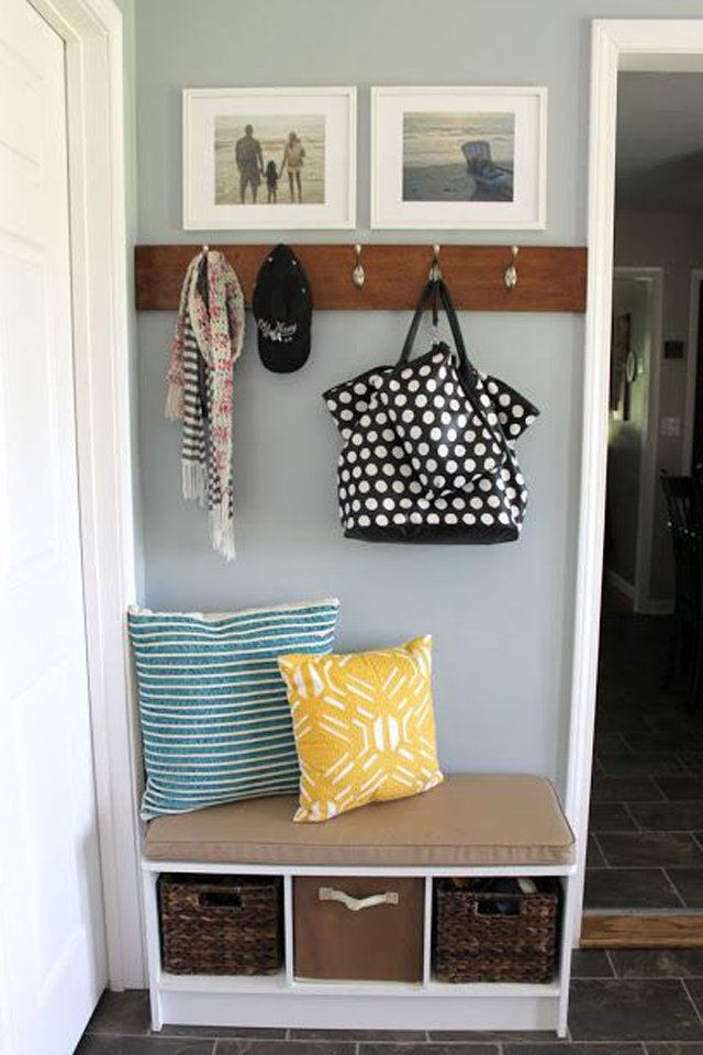 هناك الكثير من الأفكار البسيطة التي تمكنك من استغلال مدخل المنزل بشكل عصري، فمثلا قومي بوضع كنبة صغيرة وزينيها بالوسائد، وعلقي فوقها مجموعة من الشماعات، لتعلقي عليها الجواكيت أو السكارفات أو القبعات أو غيرها من الإكسسوارات الخفيفة. أيضا يمكنك استغلال مساحة خلف الباب بطرق متعددة منها هذه الأفكار التي نقترحها عليك .