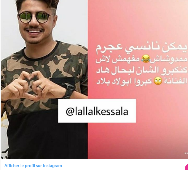 وعلّق إيهاب على حسابه الخاص بتطبيق “انستغرام” بسخرية قائلا ” يمكن نانسي عجرم مامدوشاش..مفهمتش لا كنبكروا الشان لبحال هاد الفنانة..كبرو بولاد البلاد”، وبعد الكثير من الجدل حول تصريح إيهاب، اضطر هذا الأخير لمسح رسالته بشكل فوري حتى لا يتسبب بمزيد من القيل والقال.