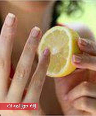 قومي بتحضير خليط مكون من ملعقة كبيرة من عصير الليمون الحامض وملعقة صغيرة من الـ “بيكنج باودر”. دلّكي أظافرك برقّة بواسطة هذا الخليط لمدة دقيقة، اغسلي يديك وجففيهما جيداً، ثم ضعي طبقتين من ملمع الأظافر.