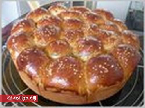 في قالب الحلوى دائري مدهون ومرشوش بالدقيق تصفف كويرات العجين واحدة بجانب الأخرى تدهن بالبيض وتترك لتخمر