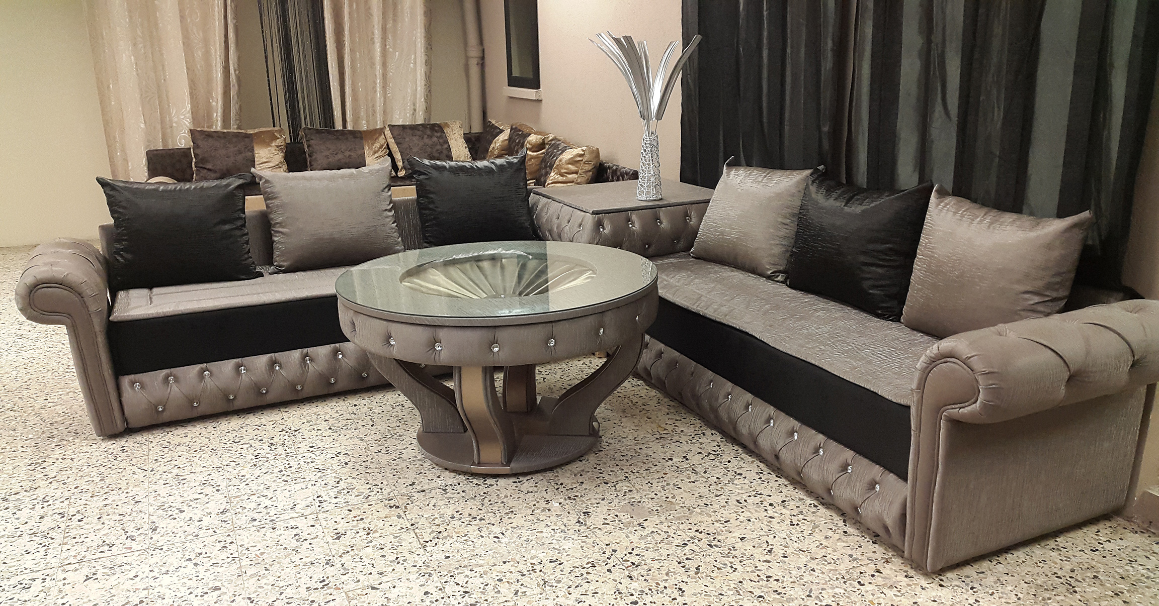 وهنا تقترح عليك مجلة لالة مولاتي هذه المجموعة المميزة من الصالون الراقي الذي يتميز بمجموعة من الخامات المغربية التي تنطلق من القصات ثم اللمسات الرائعة الإضافية التي تمنح الرقي لهذا المكان المميز.