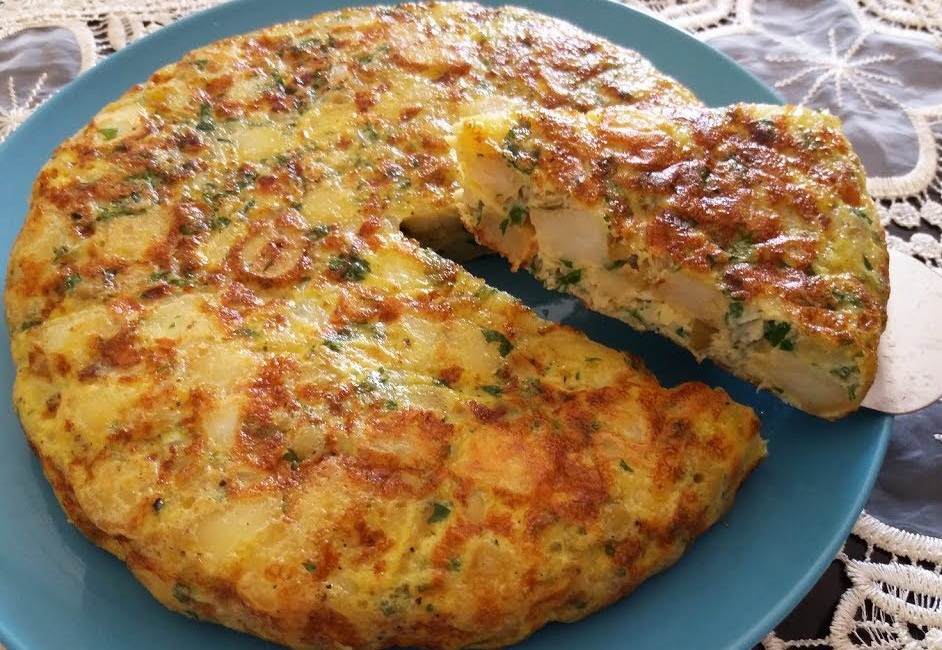 في مقلاة نسخنوا الزيت ثم نضيف البطاطا مكعبات ونخلوها تقلى مغطاة باش تصهد وطيب دغية مع التحريك جيدا ومني تذبال نضيف البصلة مشلضة ونعاودو انغطيوها حتى اطييب ومن بعد نصفيو الكل في كسكاس أو أي إناء مثقب غي باش تتقطر مزيان من الزيت ومن نحطوها في إناء آخر ونضيف ليها البيض والتوابل ونخلطو الكل ثم انقلبو الخليط في مقلة ساخنة بدون إضافة مادة دهنية وانقادوها من اجناب على حجم المقلاة ومني تشد راسها من التحت وتبدا تحمر انقلبوها بطبسيل ونعاودوانرجعوها المقلة ونخلوها اتكمل الطياب حتى اتحمر وتقدم