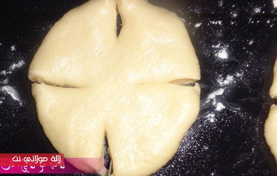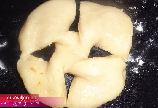 كنقطعها كريصات صغار كندهن لاطة ونرشها بالدقيق ونستف لكريصات والصور توضح بقية المراحل