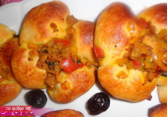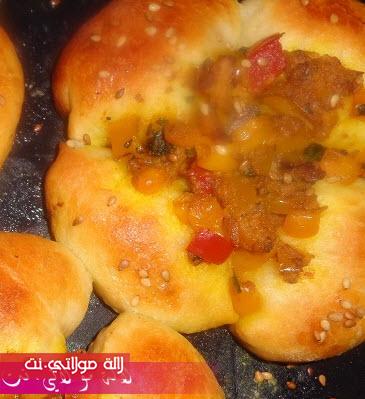 للعجين :2بطاطات مسلوقين ومطحونين في مكينة انا خدمتهم غير بالفرشيط وكملت بإيدي +2 بيضات +1فرماجةوملعقة كبيرة زبدة +قريصة ملح +نصف كاس سكر +وكاس زيت /100مل +شوية لخميرة مدوبة في نصف كاس ماء دافي +كيلو دقيق فورص تقريبا