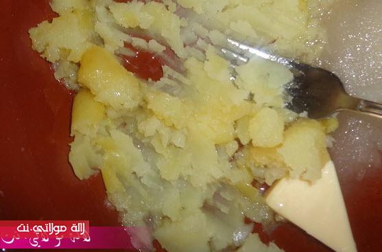لعجين :كنخدم بطاطا ونزيد بيض وسكر وملح