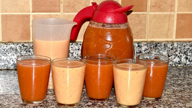 بدون حليب ولا برتقال ولا جزرعصير الخوخ بنوعين مختلفين + كمية وفيرة تروي عطش الصيف