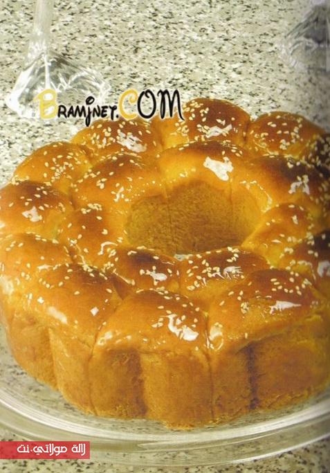 تصنع من العجينة كويرات صغيرة تصفف جميعها على شكل دائري في القالب حتى تنتهي العجين ثم تترك لتختمر وتدهن بالبيض و تطهى في فرن ساخن بعد ذلك تذهن بالمربى ترش بالزنجلان.