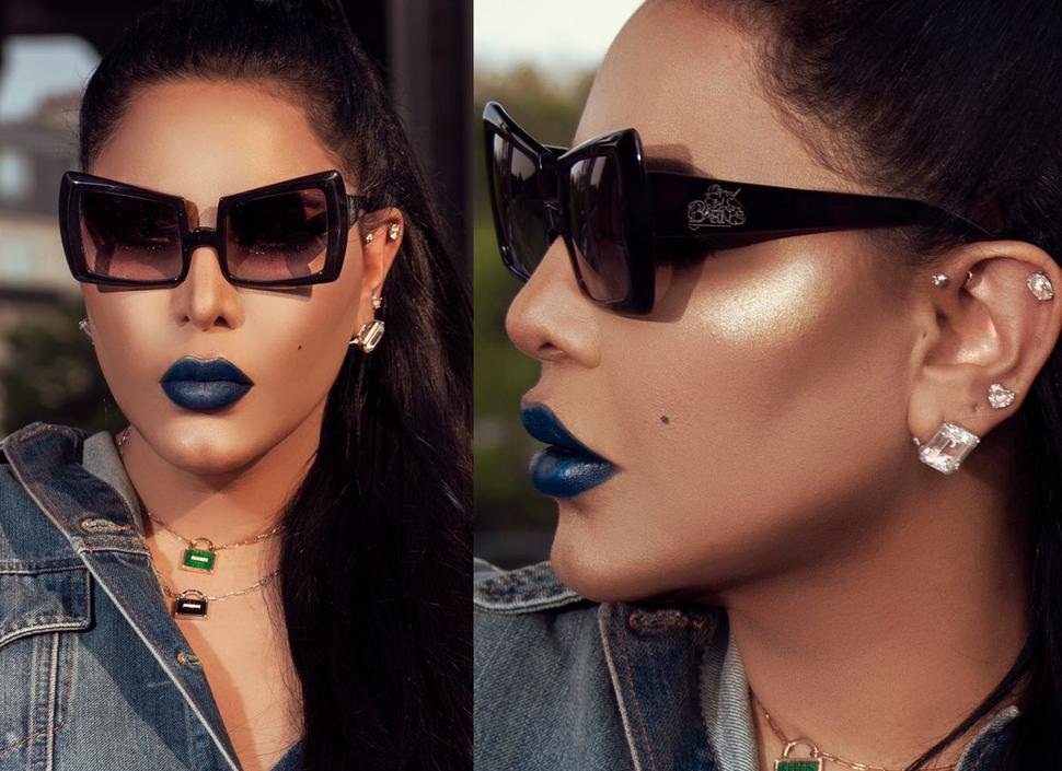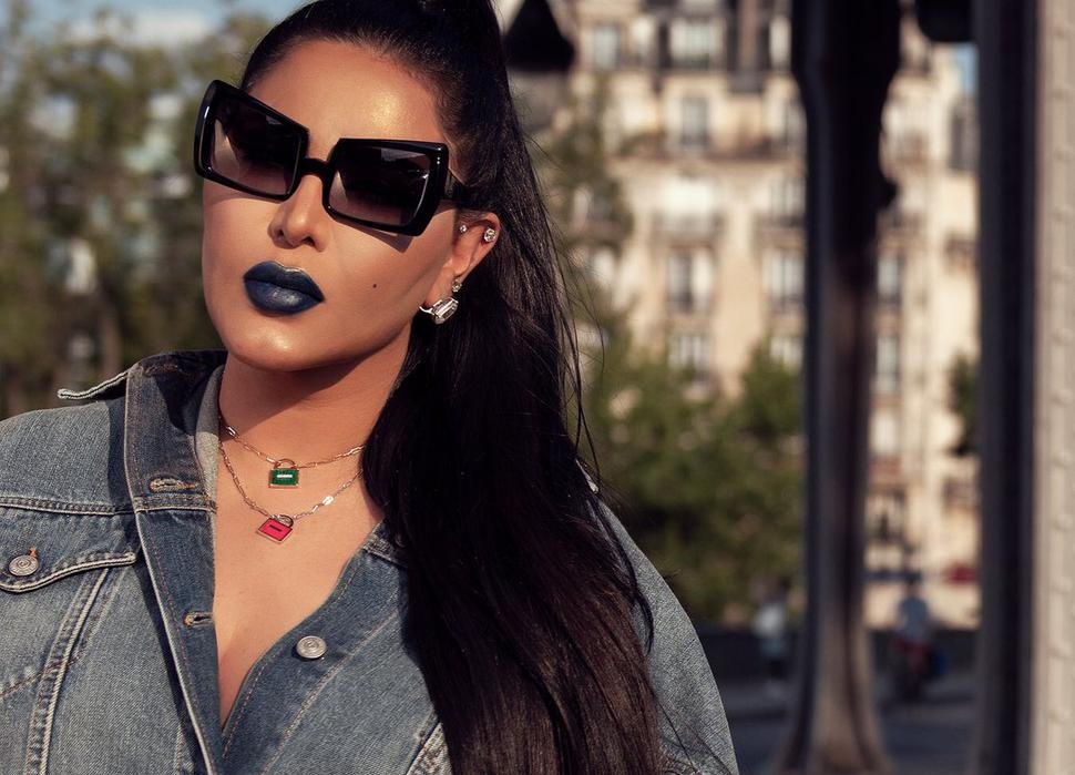 وسحبت أحلام شعرها إلى الخلف في شكل ذيل حصان طويل ممتد إلى أحد جانبي وجهها، لتبرز تصميم نظارتها المستطيلة العريضة المسحوبة إلى الخارج بشكل حاد، كما أطلت بقميص من الدنيم وزينت رقبتها باثنين من القلادات الملفتة.