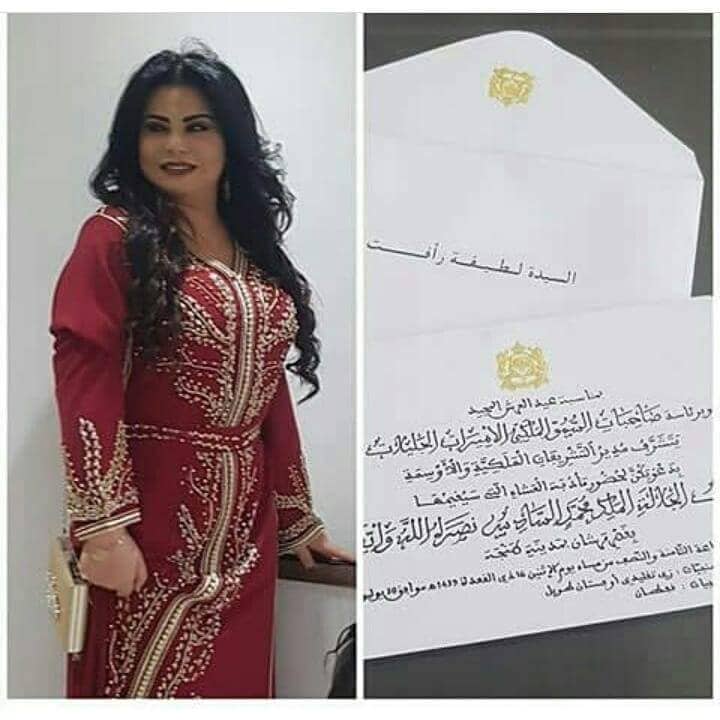 وتلزم الدعوة على المدعوات بإرتداء الزي التقليدي أو فستان طويل، وقد اختارت “رأفت” الحضور بالقفطان المغربي الأصيل، باللون الأحمر المزين بتطريزات ذهبية من تصميم المصممة المغربية مونية رمسيس.