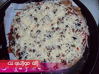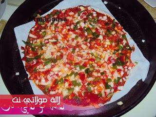 انا عملت الكفتة+الزيتون اسود+البصل+الفلفل احمر واخضر+فرماج كيري+زعتر موتزريلا