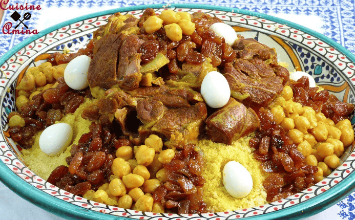 على حقو وطريقو كسكس بالزبيب والحمص بالسميدة الغليضة مذهب لذيذ وناجح %100 مع جميع الخطوات مطبخ لالة مولاتي On أغسطس 30, 2018 شارك المكونات : 150 زبيب 200 حمص زعفران الحر مذاب فالماء بصلة خرقوم إبزار قرفة ملح اللحم غنمي سميدة غليضة 1 2 3 شارك FacebookWhatsAppPinterest