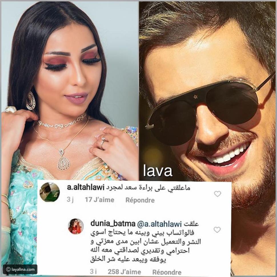 دنيا بطمة ردت بوضوح لتكشف إنها تواصلت مع سعد المجرد بالفعل، من خلال تطبيق “الواتس اب” وليس شرطاً عليها أن تنشر له منشوراً وتدعمه أمام الملايين، للتأكيد على معزته وحبها له.