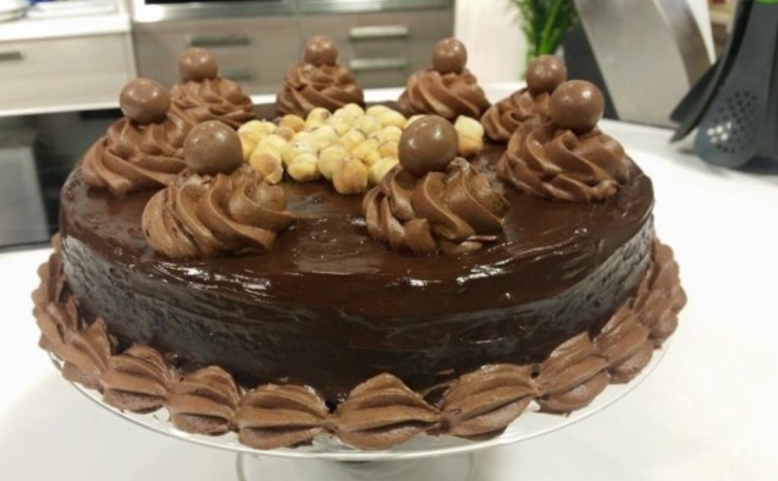 -يَصْب الخليط في الخارج تم تخبز في الفرن لمدة 30-35دقيقة، تترك لتبرد و تزين بصلصة الشوكولاتة والكاكاو المنخول.