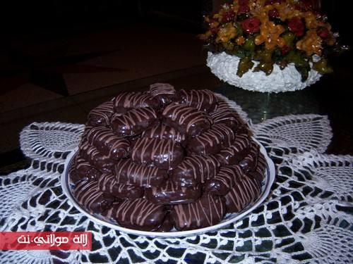 ثم ندوبو شكلاط أبيض ونضفو شوية شكلاط أسود بش يعطينا اللون بنى ونزينها