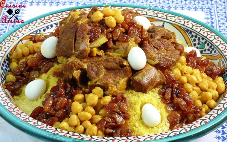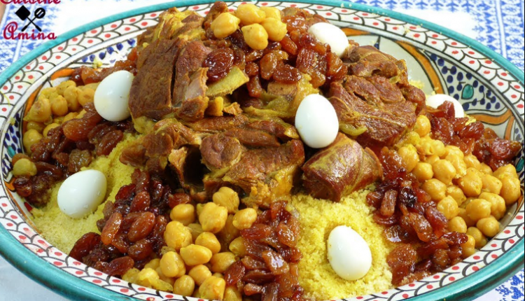 ناجح %100 مع جميع الخطوات كسكس مغربي بالزبيب والحمص بالسميدة الغليظة