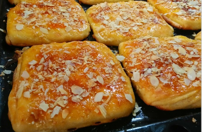 للتزيين مربى المشمش أو عسل ورقائق اللوز محمرة أو الفول السوداني