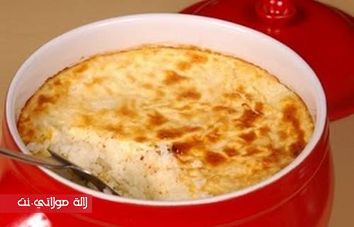 5- يُوضع الطاجن في الفرن لمدة 45 دقيقة ويُغطى لمدة 30 دقيقة ،ثم يُرفع الغطاء ويُدهن سطح الأرز بملعقتين من القشطة ويُترك بالفرن لمدة 15 دقيقة حتى يحمر سطح الأرز .