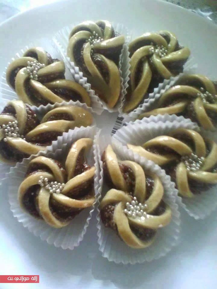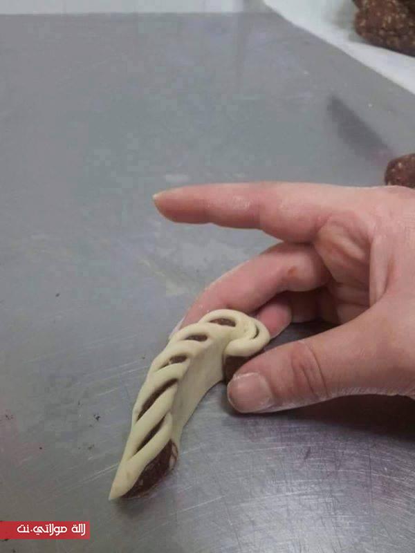 رقم 2 ثم 3 ثم 7 بعدها تحشي وتشكل ثم تنقش وتدهن بالحليب وترش بالحلوى الفضية كازينة كما بالصور