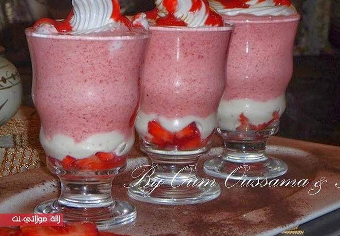 نضع فوقهم م ك ياغورت ثم خليط الفريز