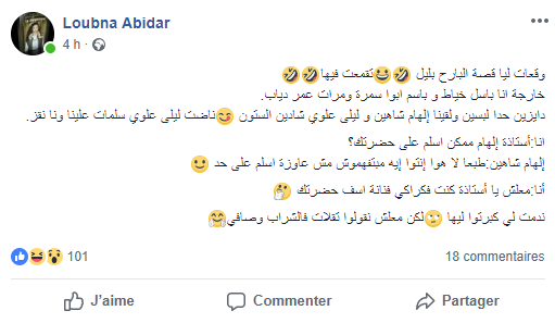 وشاركت “أبيدار” متابعيها عبر موقع التواصل الإجتماعي “فايسبوك” تفاصيل الموقف الذي تعرضت له، مشيرة أنها أرادت التقاط صورة مع الفنانة المصرية إلهام شاهين لكن هذه الأخيرة رفضت طلبها بطريقة غير لبقة.