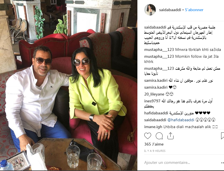 شاركت الفنانة المغربية سعيدة باعدي محبيها عبر حسابها الشخصي على موقع التواصل الإجتماعي “إنستغرام” صورة تجمعها بزوجها حميد باسكيط من قلب مصر في إطار المهرجان السينمائي لدول البحر الأبيض المتوسط بالإسكندرية.