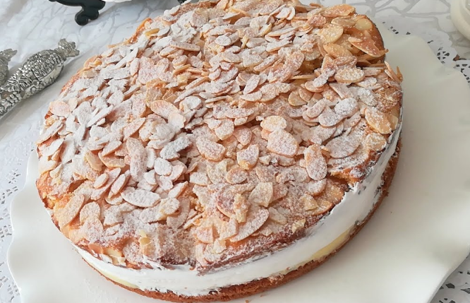القالب المستعمل 24سم للتزيين كمية من رقائق اللوز