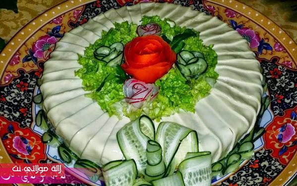 نجمع الخليط بالميونيز نضيف ملح ابزار زيت الزيتون حسب الضرورة