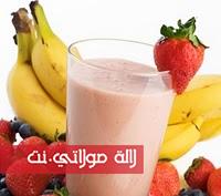 2. يتم ضرب كمية من الفراولة والموز مع بعض وعليهم السكر.