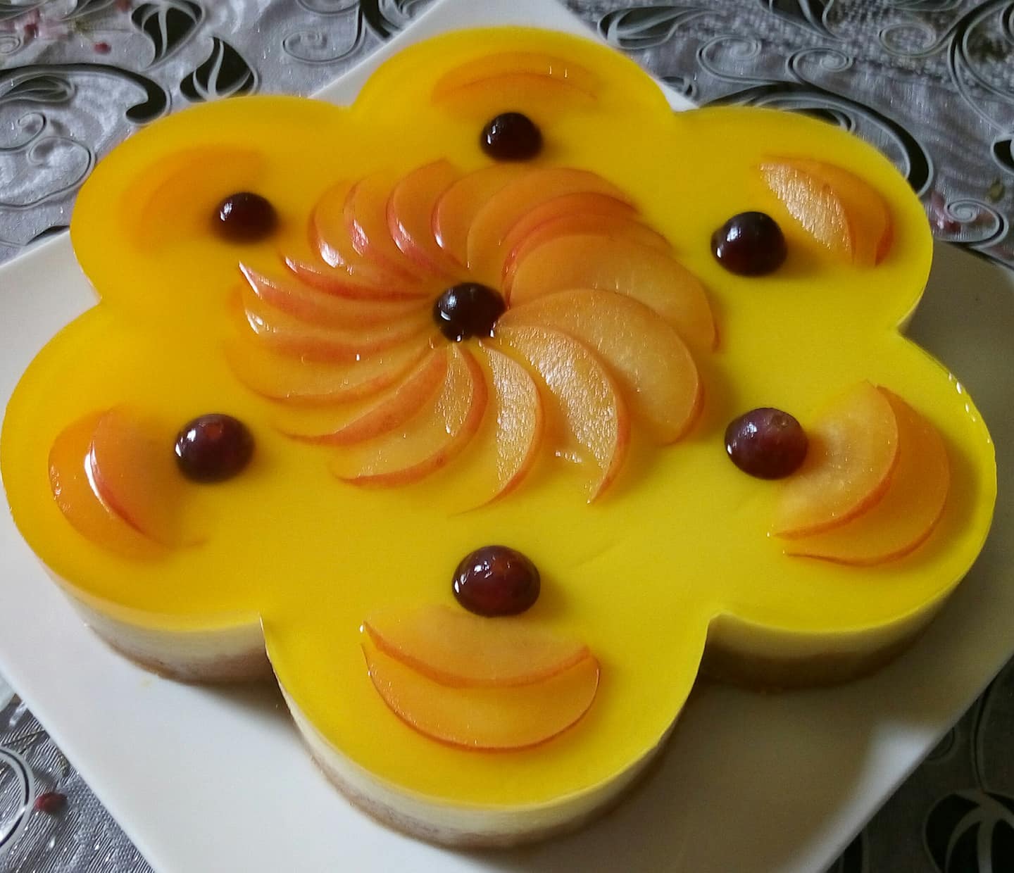 نزين باي فاكهة تم ناخد كاس ماء نضع عليه ساشي فلون صغير وملعقة صغيرة سكر نخلط الكل تم نضع فوق نار حتى يغلى نترك يدفى قليلا تم نفرغ فوق الفواكه وندخلها لتلاجة حتى تبرد ويتمسك الكريم وبالصحة