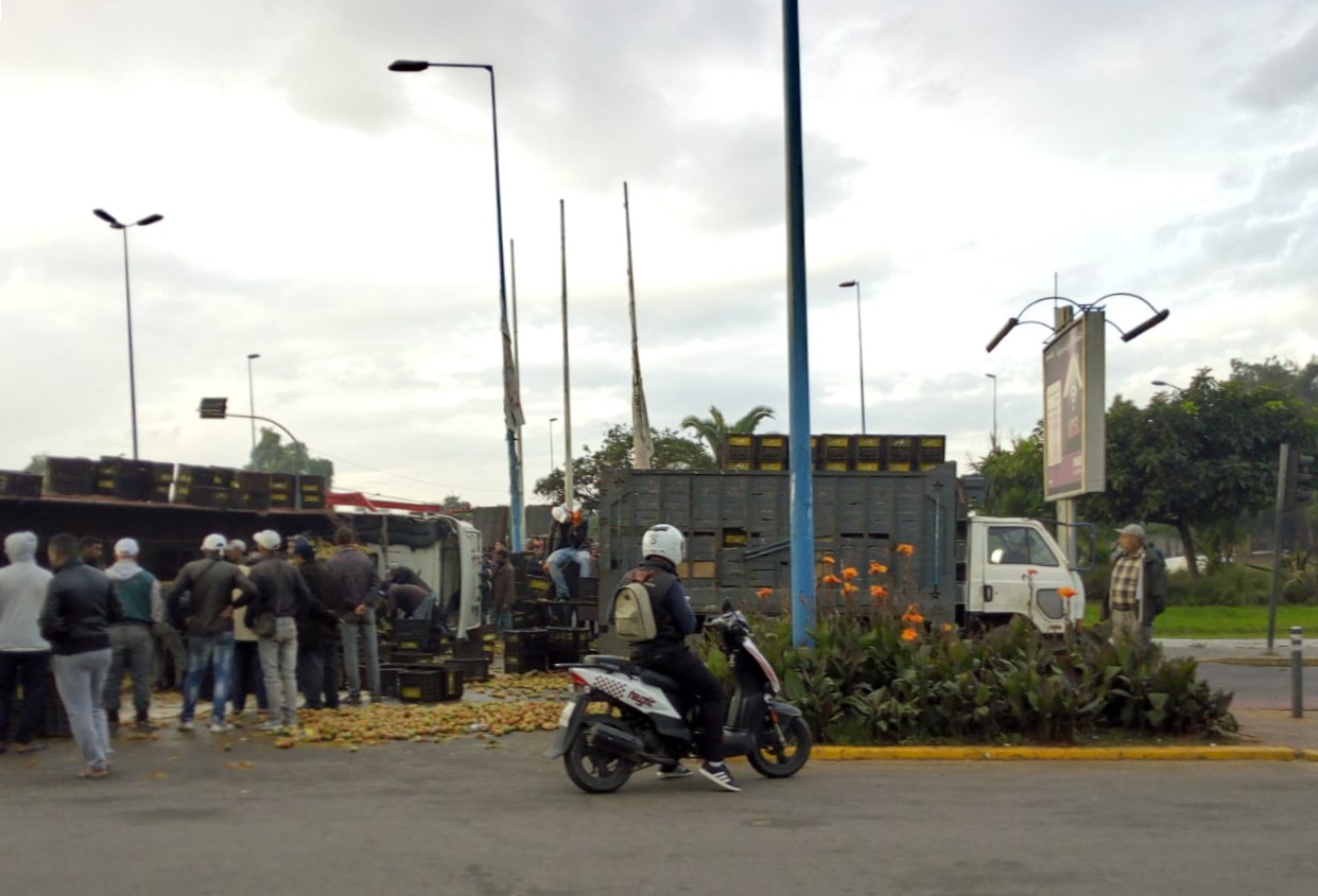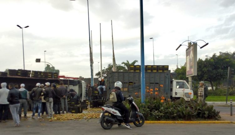فيديو انقلاب شاحنة بالقرب من سوق الجملة للخضر والفواكه بالبيضاء