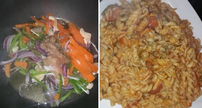المعكرونة بالخضر والصلصة كتجي بنيينة بزاف ولي داقها ميشبع منها العشيوة المفضلة عندي
